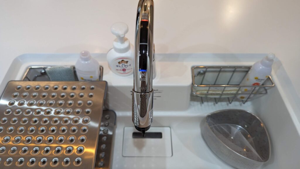 - 料理中に手が汚れていても、レバーに触れずに水を出せるため衛生的