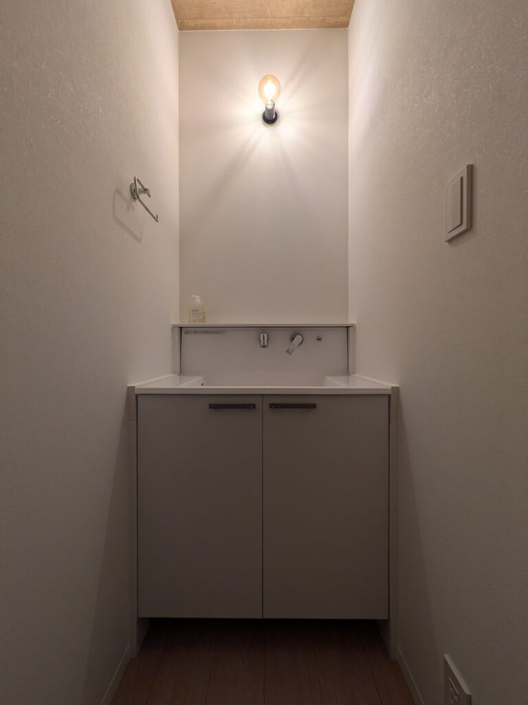 我が家は2階のトイレ前に設置。トイレ後の手洗い、加湿器の水補充などに使用しています!