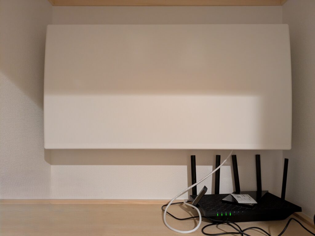 一条工務店の家には標準で「情報ボックス」が設けられていて、そこにLANケーブルも用意されています。なので、基本的にはその情報ボックスの近くにルーターを設置すると、見た目もスッキリ&通信も安定します。