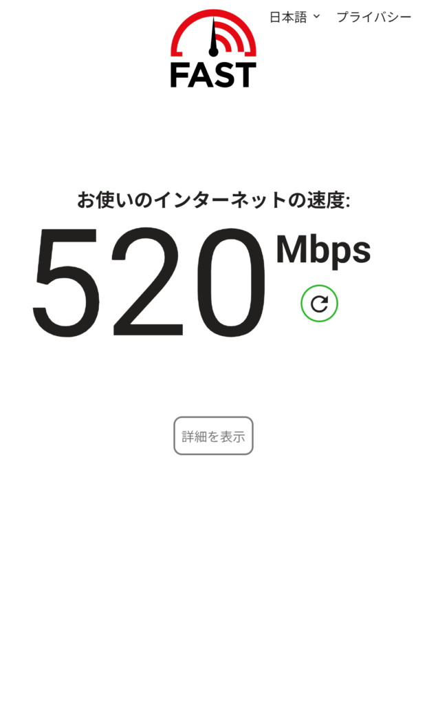 参考までに速度テストをしてみました↓