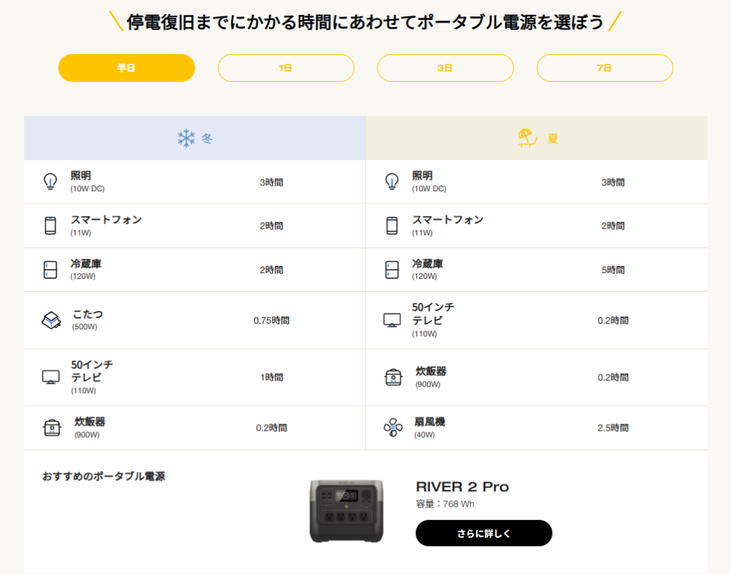 ✔ 家族をどこでも守りたい → ポータブル電源も必要